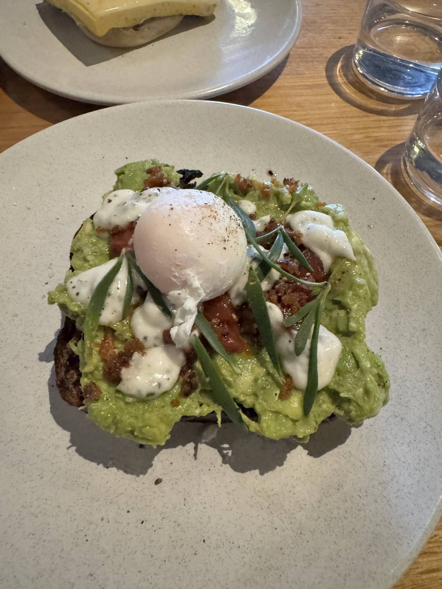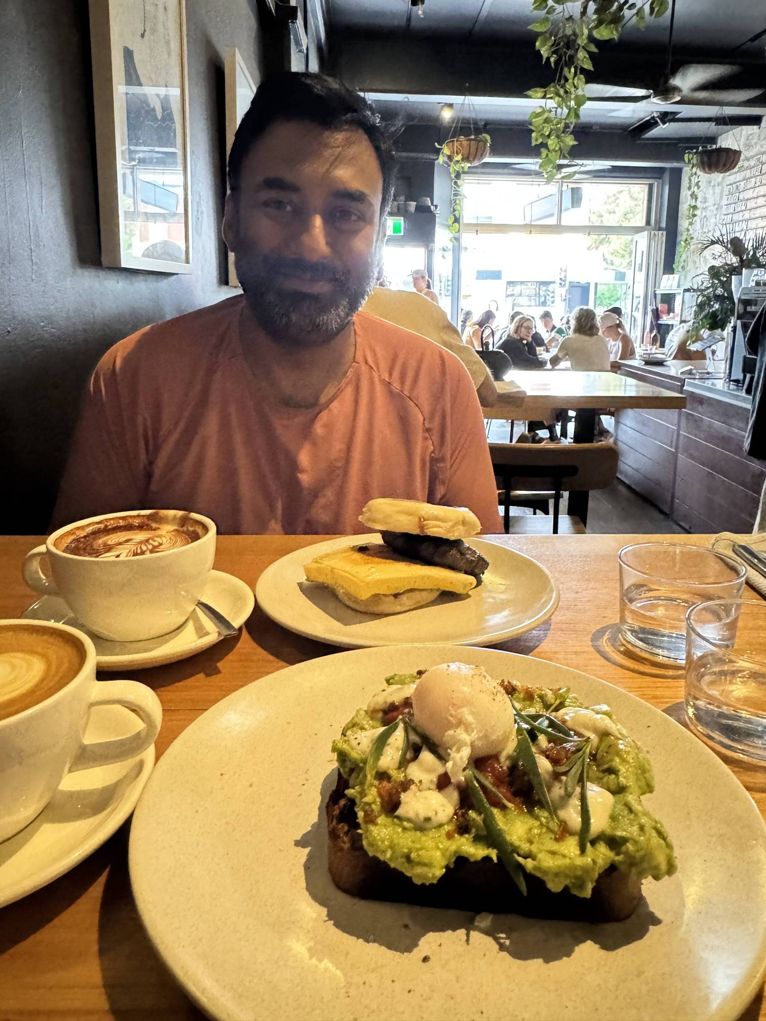 BTB Kirribilli - Jo wanted to stop by here before we move from this place as they have a rotating, season specific menu. We went over on Sunday after our walk to Kirribilli and picked up a few things. I had the sausage-and-egg muffin, while Jo had the avo smash on dark rye bread with grilled watermelon and macadamia salsa. The sausage patty was beef and roo and was really juicy. We had our usual coffee orders as well. I pointed Jo to the crocodile chorizo toastada and thought I was getting that - she wasn’t too pleased to know I went for the sausage and egg muffin instead!