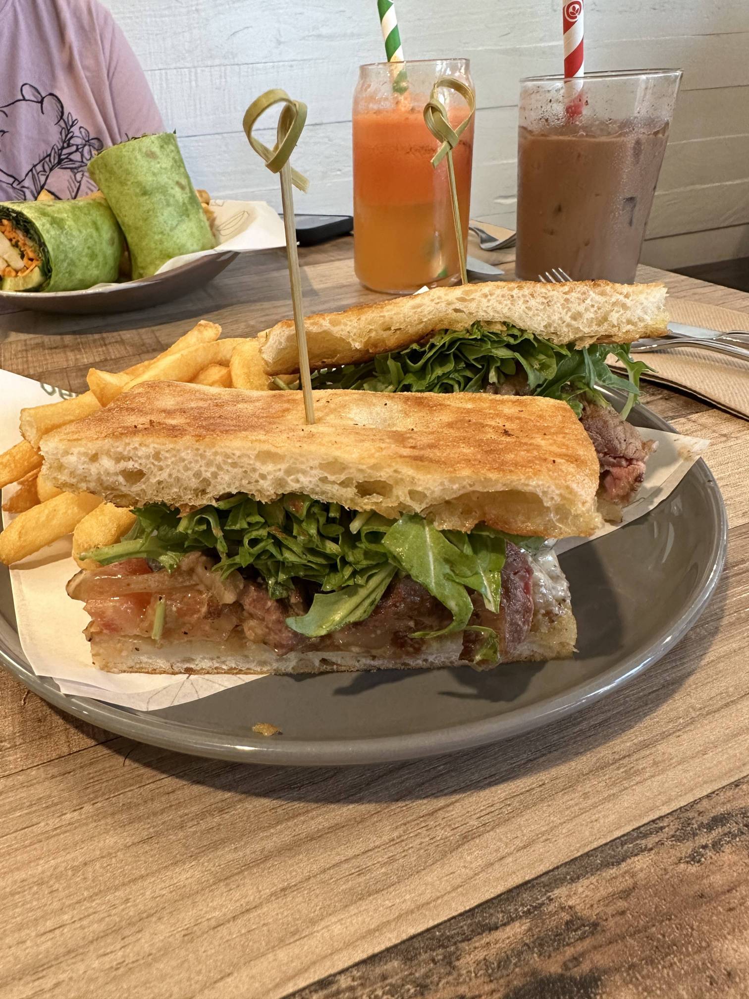 Venn Cafe - Jo went to our usual Humm Cafe while waiting for the rental viewing to finish. After it was done and when I walked over there, we realized that it was closing down for the day so we went over to Venn just a short walk away. Usually, we are in Venn a lot earlier - visiting here during lunch time meant that I could try out their steak sandwich again, which I absolutely loved last time around. And it was no different this time around - the steak sandwich was juicy, tender and packed with flavour. Jo had the satay chicken wrap which she said was good as well. Because it was so hot, I had the iced mocha while Jo had the ‘Tromoso’ juice - a mix of lemon, watermelon, carrot, orange which was pretty good as well.